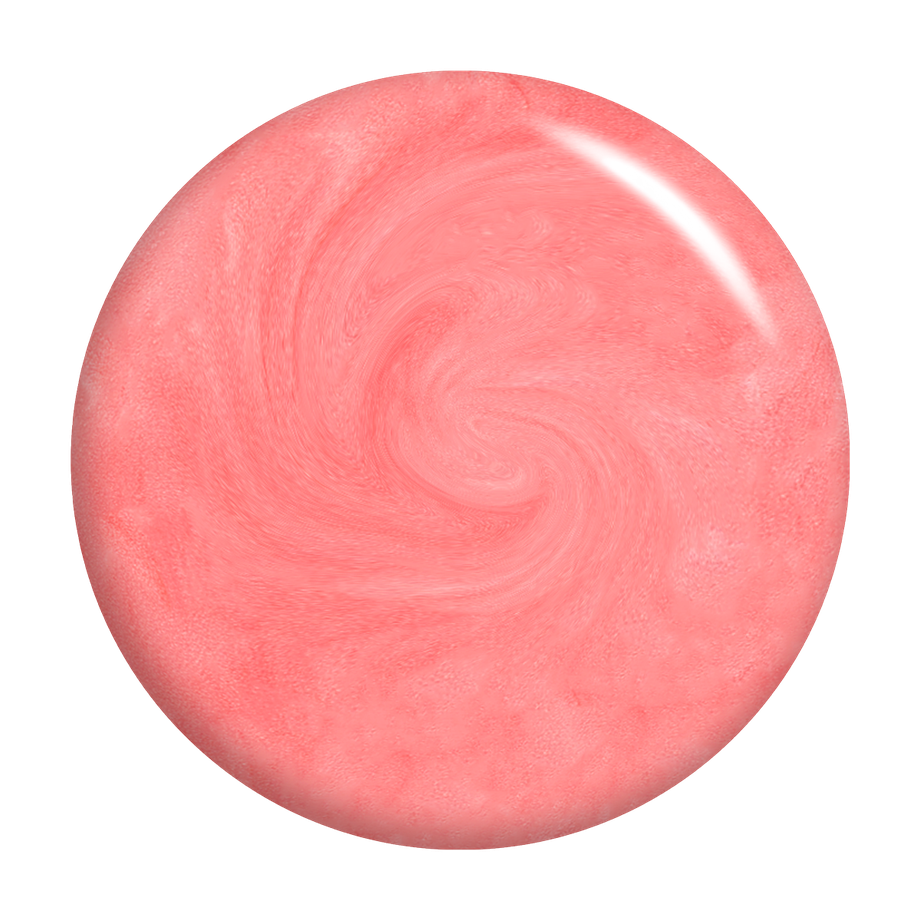 Reddish pink. Pastel. Pearl finish. Opaque. Warm undertone.